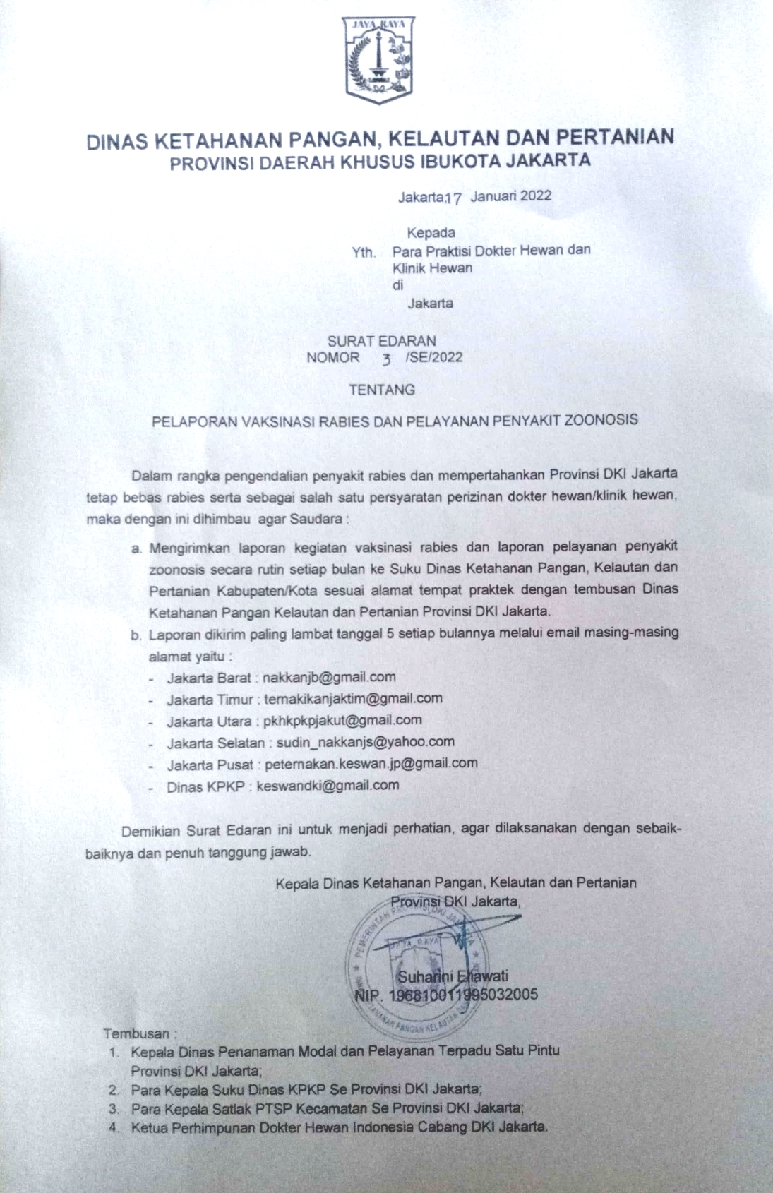 Surat Edaran No.3 Dinas Ketahanan Pangan, Kelautan dan Pertanian Provinsi DKI Jakarta